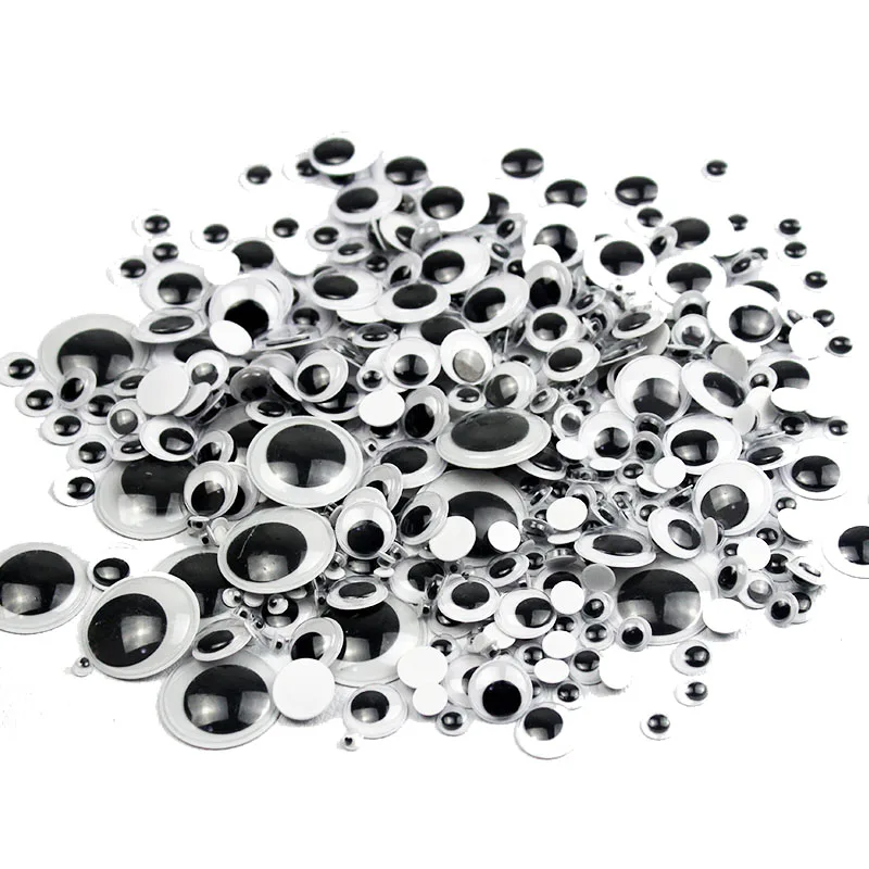 - Conteúdo da embalagem: 100 pcs de olhos autocolantes em mistura de tamanhos 5–30 mm