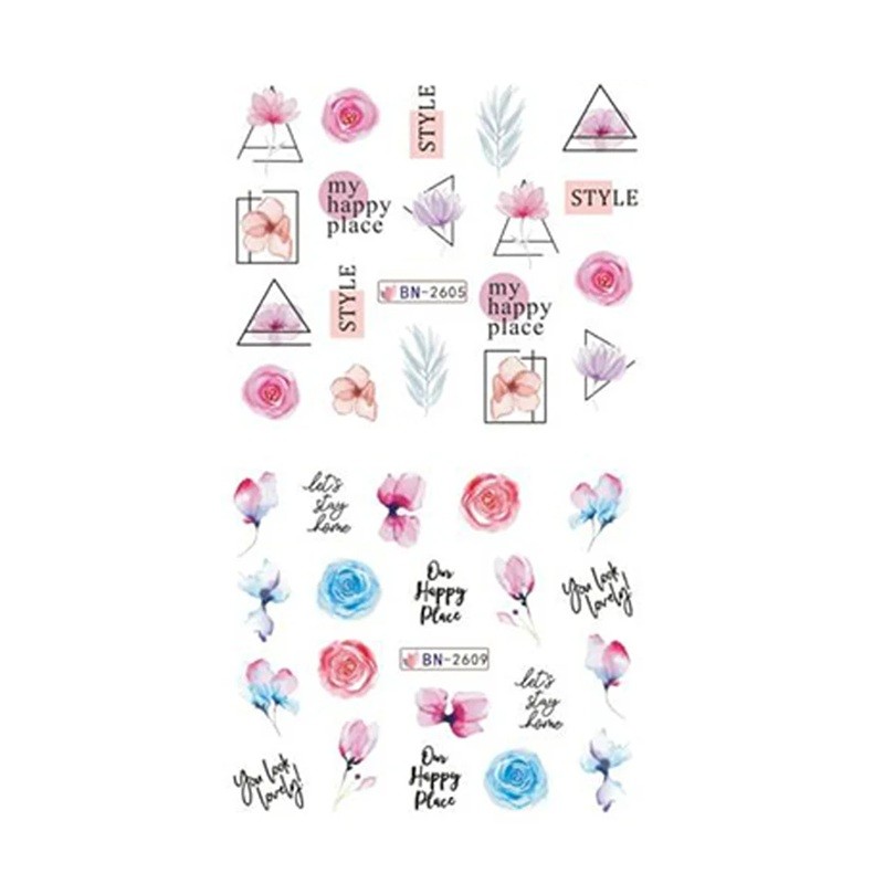 • 12 folhas de autocolantes com delicados motivos aquarelados para uma decoração variada das unhas