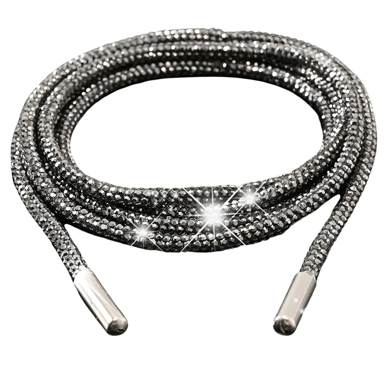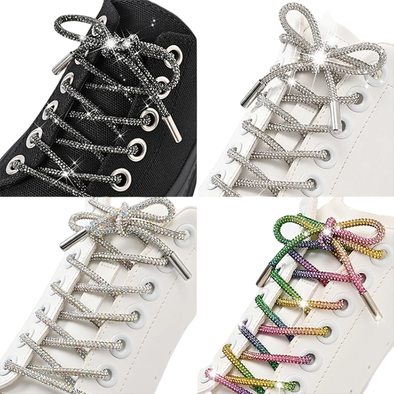 Atacadores de strass elegantes em nylon para um visual excecional do seu calçado. Detalhe brilhante que destaca ténis, botas de tornozelo e calçado estiloso. Descrição completa
