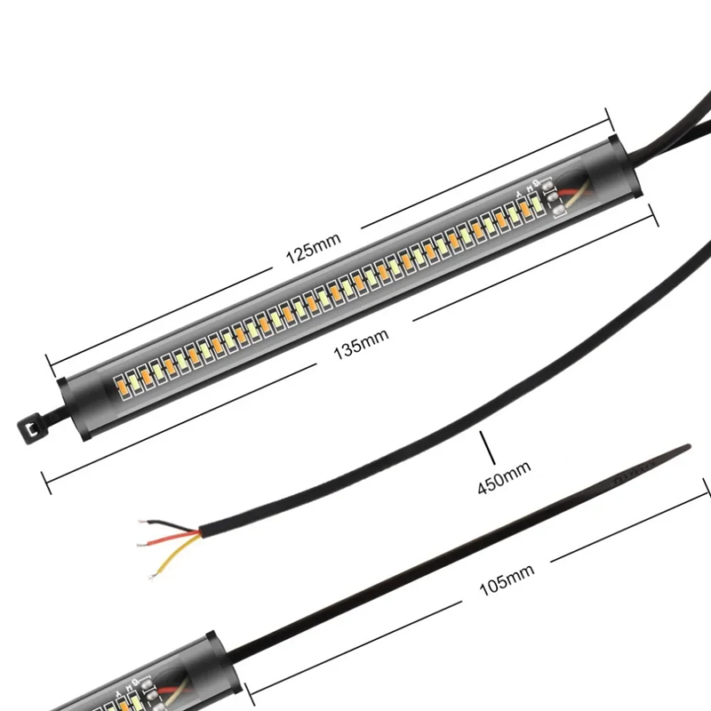 2 pcs luzes LED de direção para motocicleta 12V luz branca e amarela fita adesiva 12,5 cm cabo 45 cm fita de aperto 10,5 cm iluminação de segurança