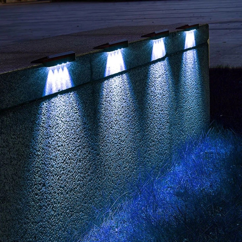 2 pcs Luzes solares de parede 4 LED Luzes exteriores à prova de água para cercas e caminhos Luzes brancas frias para fachadas, terraços, escadas
