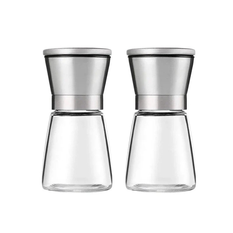 2 pcs moinho manual de sal e pimenta 13,5 x 6,5 cm Moinhos de cozinha em aço inoxidável com moagem manual de especiarias para mesa e cozinha