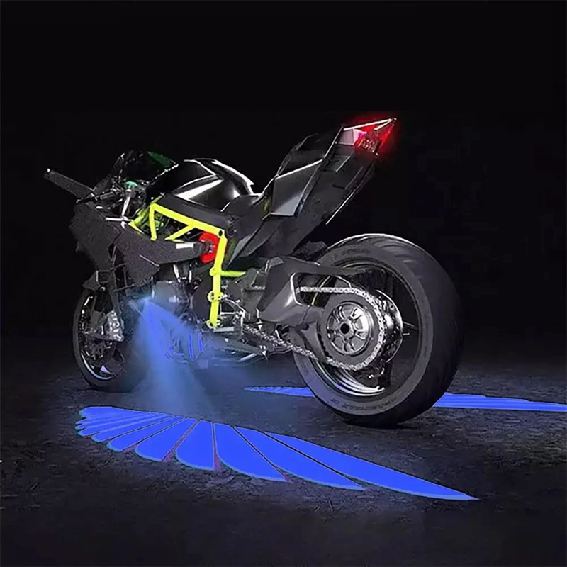 Adiciona um visual e estilo únicos à tua motocicleta com luzes LED decorativas com o tema de asas de anjo. Este par de projetores cria um efeito luminoso impressionante ao abrir as portas ou ativar a alimentação. São ideais como iluminação de boas-vindas ou como elemento decorativo para entusiastas de tuning.