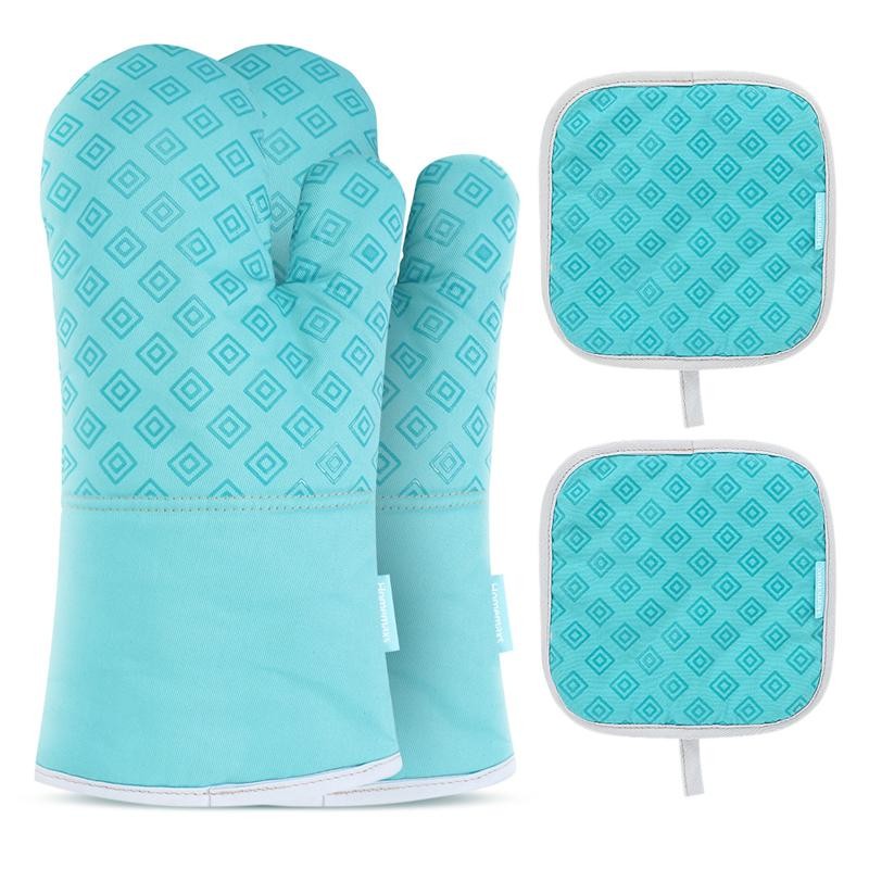 As luvas e as bases têm na superfície detalhes em silicone, que as tornam antiderrapantes.