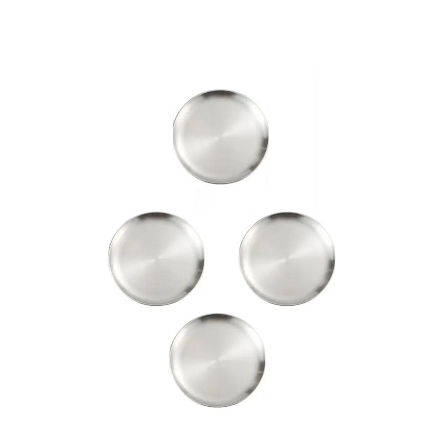 4 pcs pratos de aço inoxidável 17 cm Pratos de cozinha prateados para sobremesas, entradas, serviço e refeições diárias