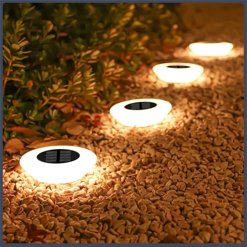 4 unidades de Luz Solar LED para Exterior Lâmpadas de Chão Branca Quente IP65 Iluminação de Jardim à Prova de Água para Terraço, Quintal, Caminho, Relvado, Entrada