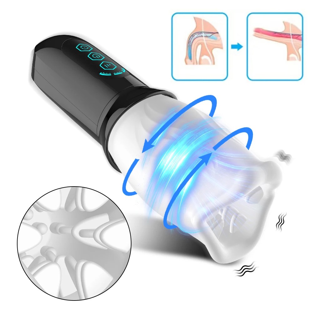 Descubra uma nova dimensão de estimulação com o acessório de massagem vibratória rotativa com sucção, que foi projetado especialmente para homens. Este inovador brinquedo erótico combina vibrações, rotação e efeito de sucção, proporcionando uma experiência intensa e realista. A cabeça de silicone branca é à prova d'água e removível, permitindo fácil manutenção e limpeza higiénica. O punho ergonómico com display digital permite fácil controlo e alternância entre 10 modos de vibração, que satisfarão todas as necessidades.
