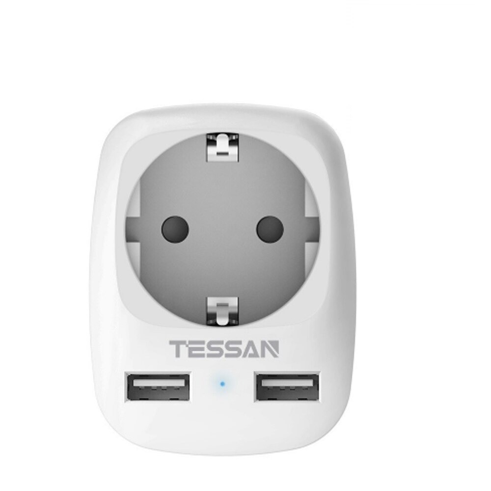 Conectores: tipo E (plugue), tipo F (tomada), 2x USB (fêmea)
