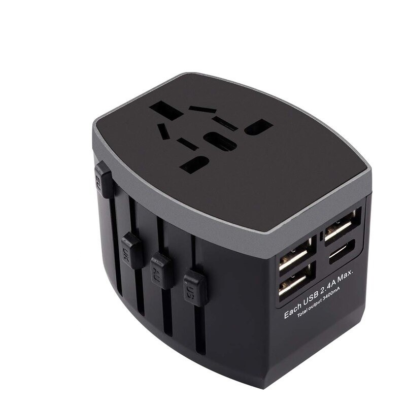 Adaptador de viagem universal com 3x USB e 1x porta USB-C