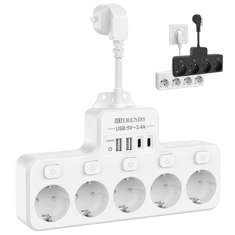 - 5x tomada EU com interruptores individuais para um controlo conveniente dos dispositivos individuais