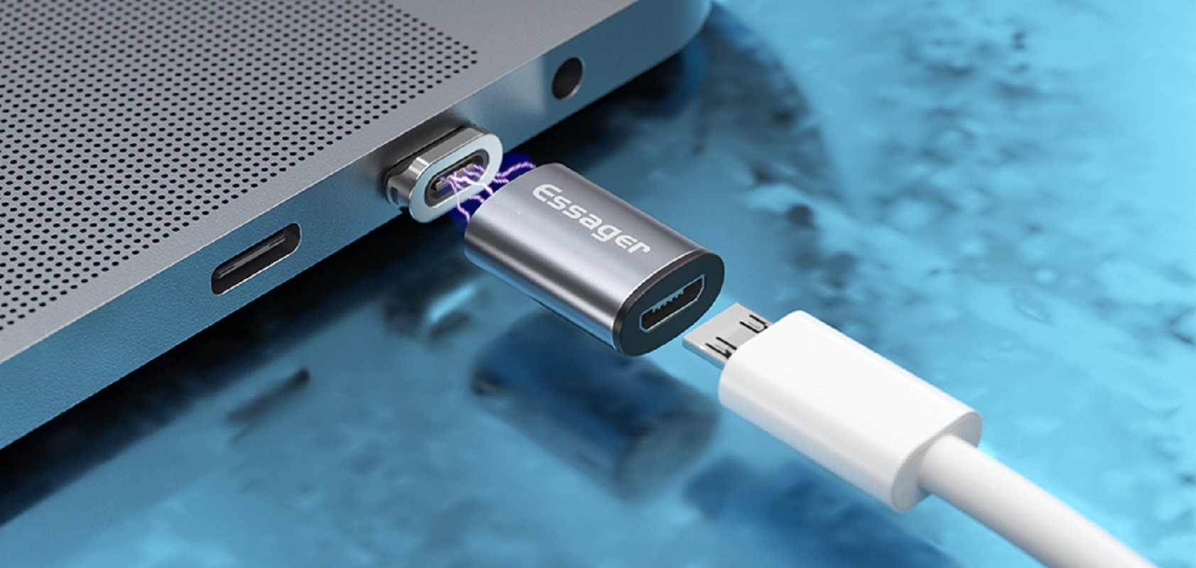 O conector magnético permite alterar diferentes extremidades (Lightning, USB-C, Micro USB).