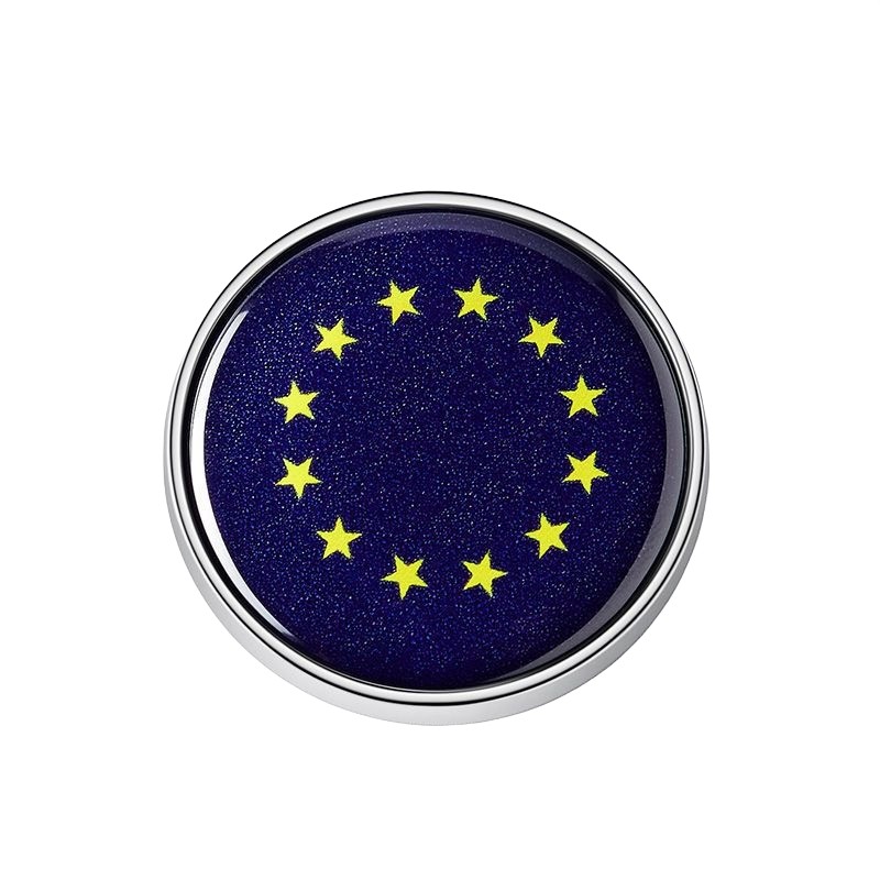 Adesivo da bandeira da UE com diâmetro de 2,8 cm. Forte aderência. Execução de qualidade com borda metálica.