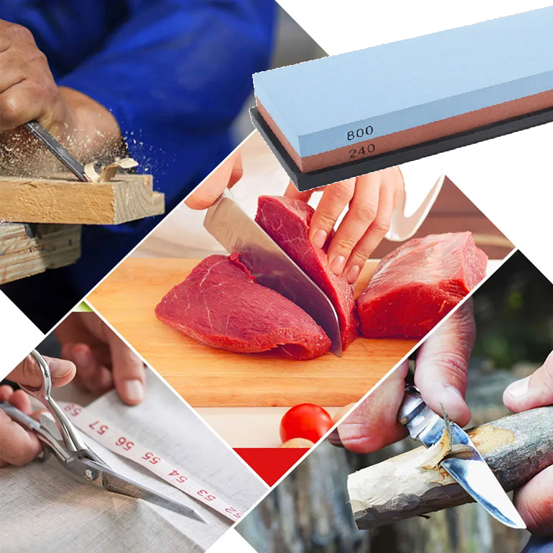 Pedra de afiar com granulação 240/800 para facas e ferramentas cegas. Pedra aquática com base antiderrapante, afiação precisa e afiada sem óleo. Descrição completa
