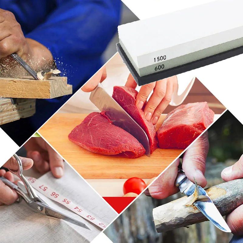 Afiador de facas duplo 600/1500 grit em corindo branco com base antiderrapante pedra de afiar para facas de cozinha ferramentas e utensílios de escultura