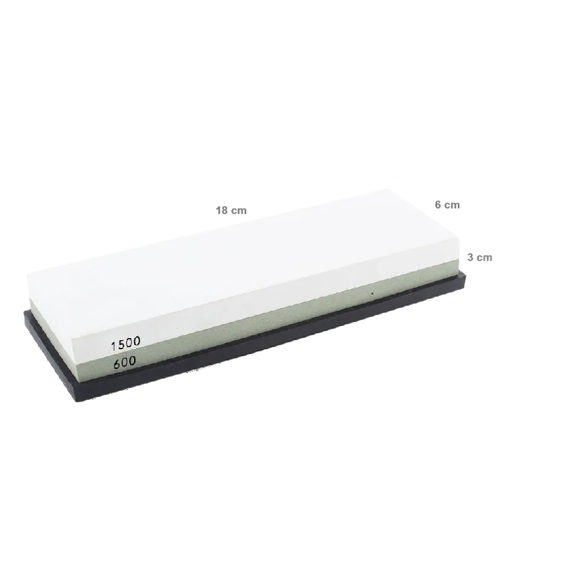 Este afiador duplo com granulação 600 e 1500 é destinado à manutenção regular do fio de facas de cozinha, tesouras e outras ferramentas. O lado com granulação 600 grit serve para restaurar o fio, enquanto o lado mais fino 1500 grit é ideal para polimento preciso e afinação da lâmina. Fabricado em corindo branco profissional, oferece alta dureza, desgaste uniforme e longa durabilidade. Utiliza-se com água, o que garante uma forma limpa, segura e ecológica de afiar sem necessidade de usar óleo. A base antiderrapante de silicone assegura a estabilidade do afiador durante o uso e protege a superfície de trabalho contra danos.