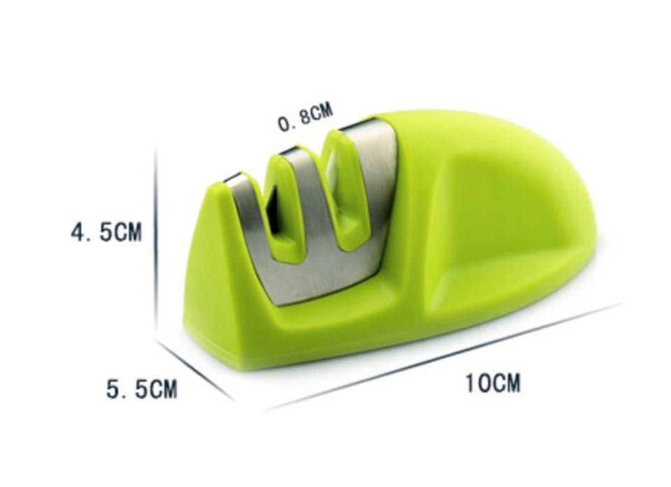 É fabricado em aço inoxidável de alta qualidade e contém 2 tipos de discos de afiação - fino e grosso.