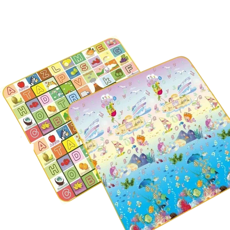 Alfombra de jogo para crianças 180x120x0,5 cm Tapete de espuma macia para rastejar EPE Motivo de mundo aquático em ambos os lados Tapete para bebés e crianças pequenas