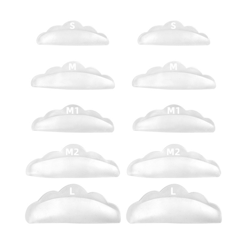 Almofadas de silicone que servem para curvar pestanas naturais. Basta colocá-las suavemente sobre a pálpebra fechada da cliente. São agradáveis e não irritam os olhos.