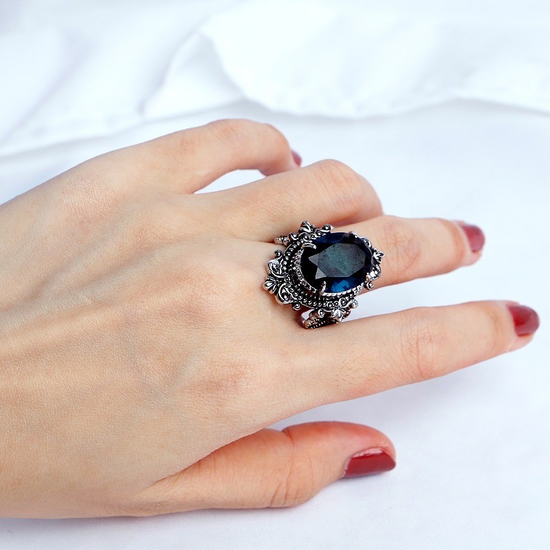 Material: metal de bijuteria, imitação de safira