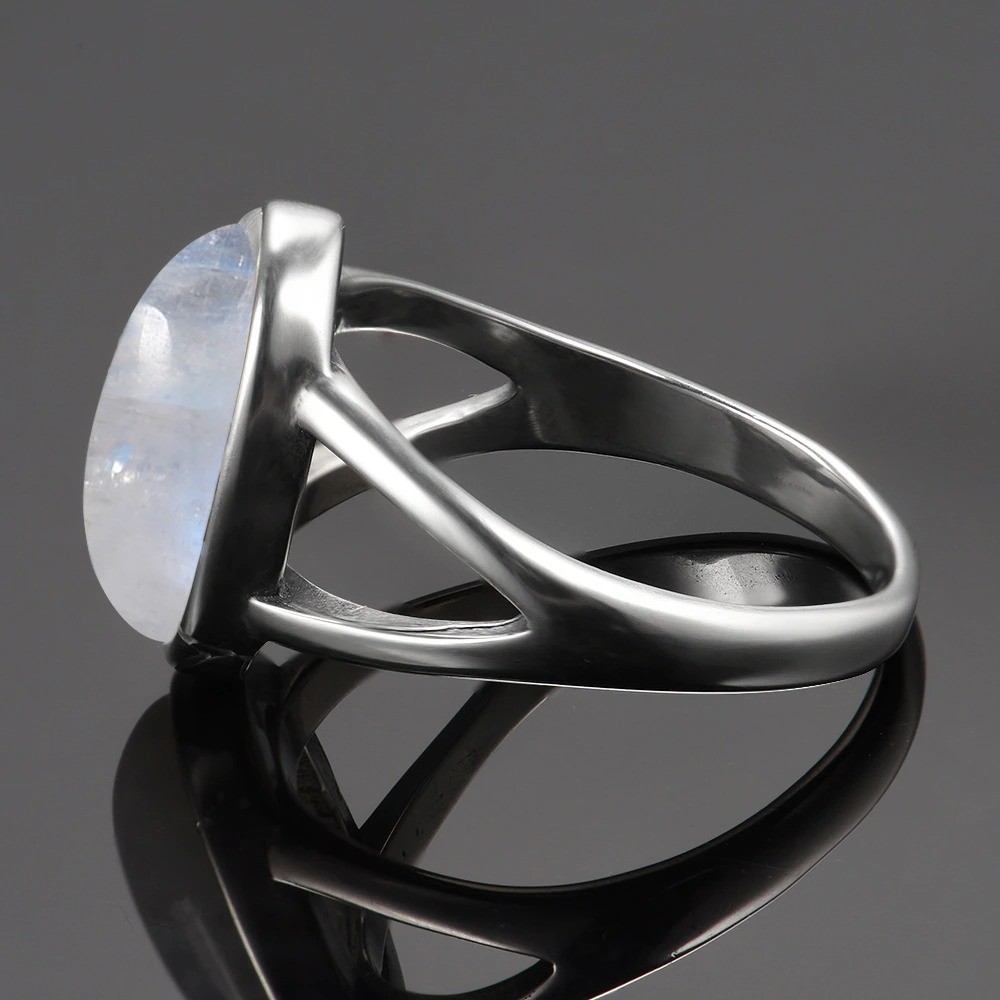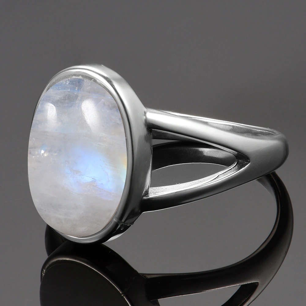 Material: metal de bijuteria, imitação de pedra da lua