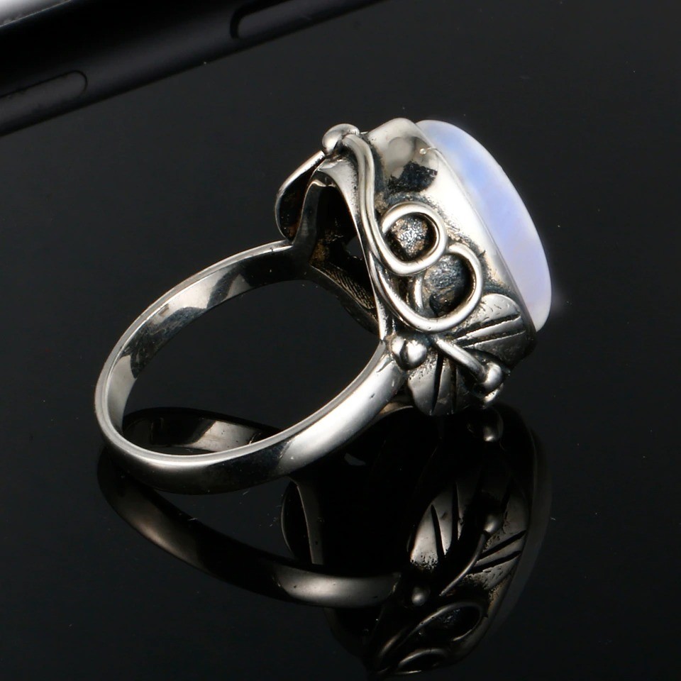 Material: metal de bijuteria, imitação de pedra da lua