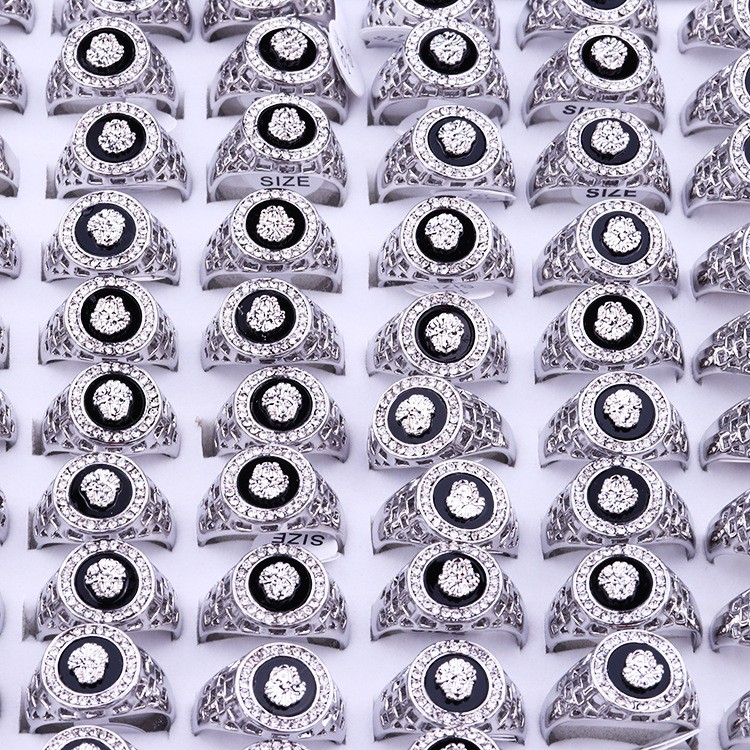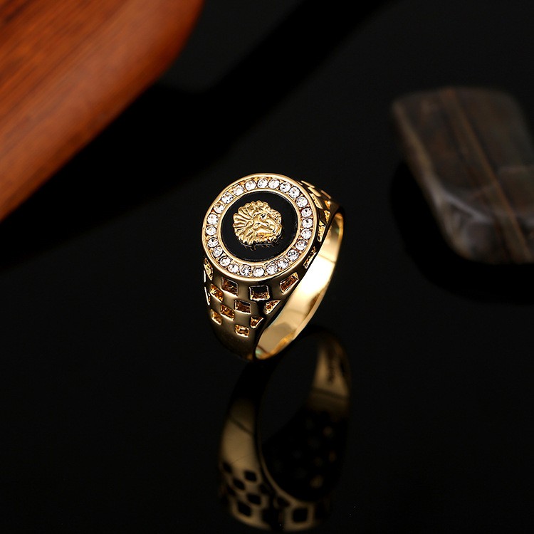 Este anel masculino com pedras e cabeça de leão é um acessório muito na moda.