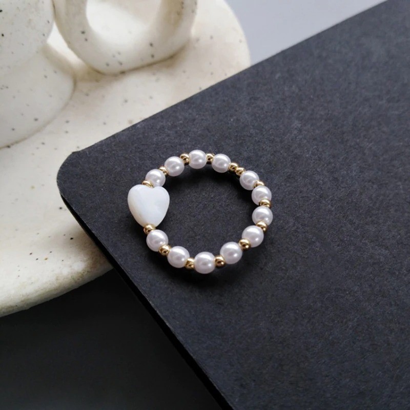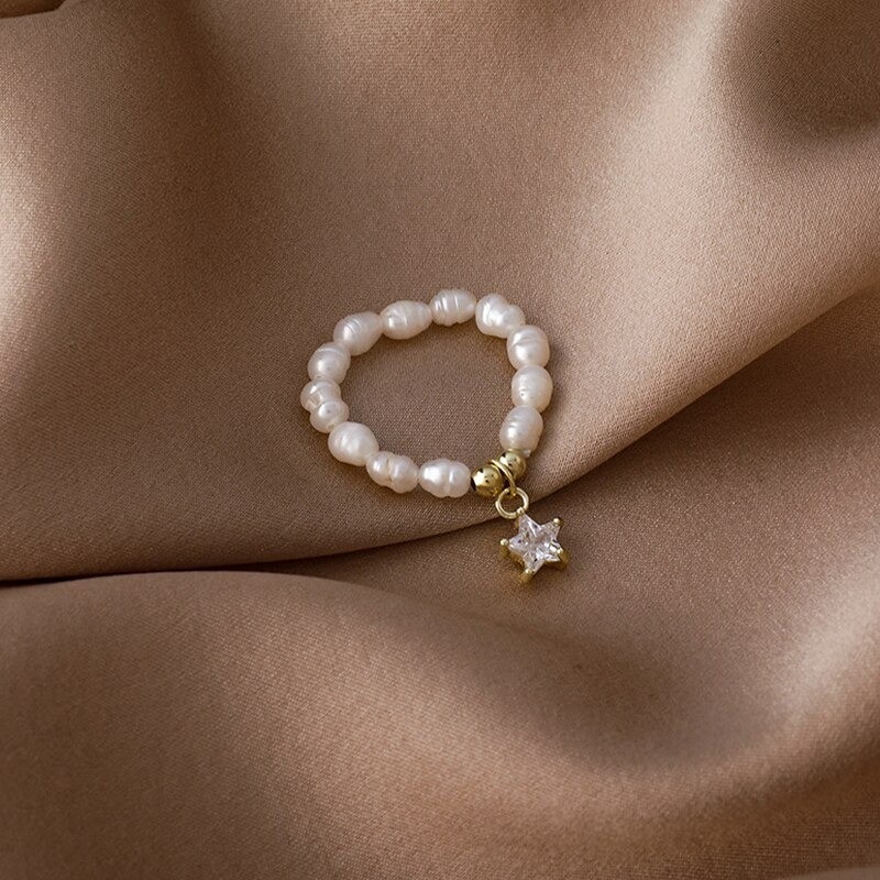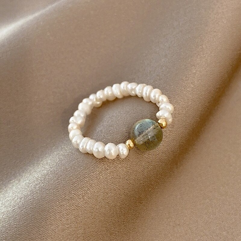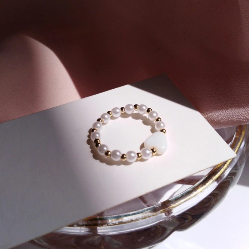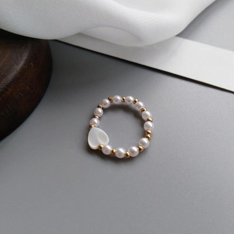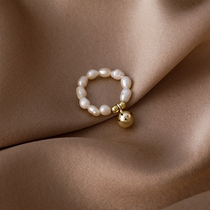 Anel feminino com pérolas