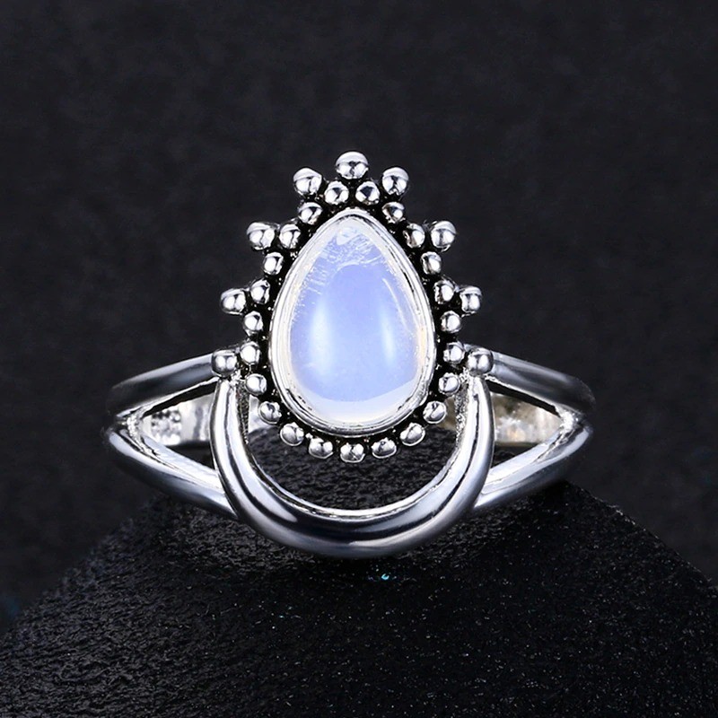 Material: metal de bijuteria, imitação de pedra da lua