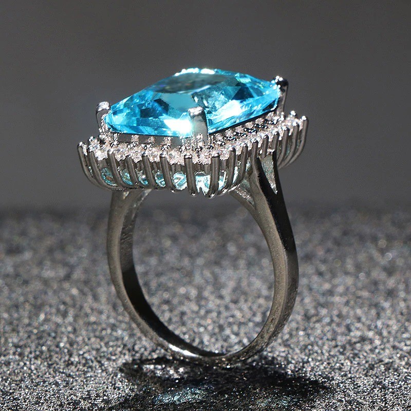 Material: metal de bijuteria, zircão, imitação de água-marinha