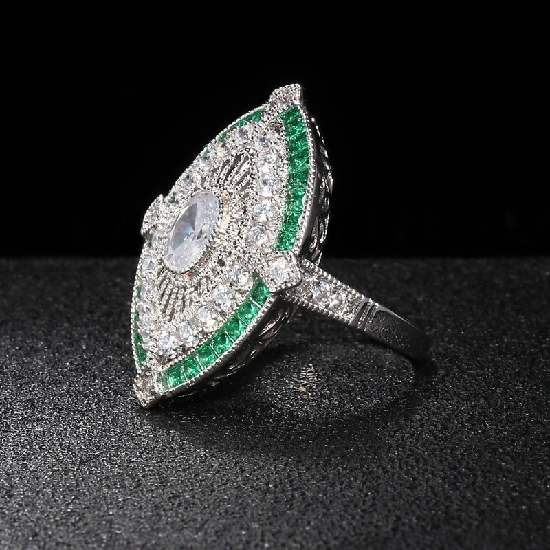 Material: metal de bijuteria, imitação de cristal, imitação de esmeralda