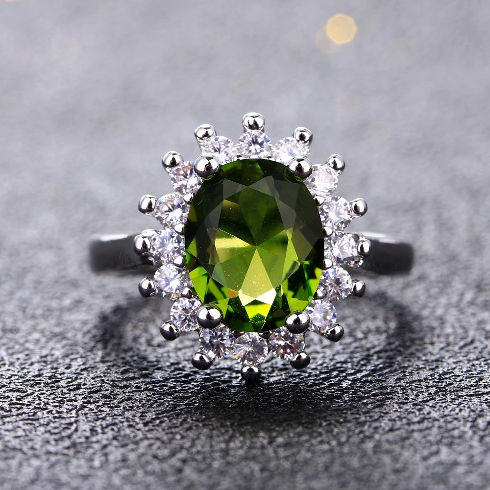 Material: biżuteria metálica, imitação de peridoto