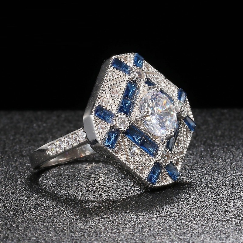 Material: biżuteria metálica, imitação de safira, zircão