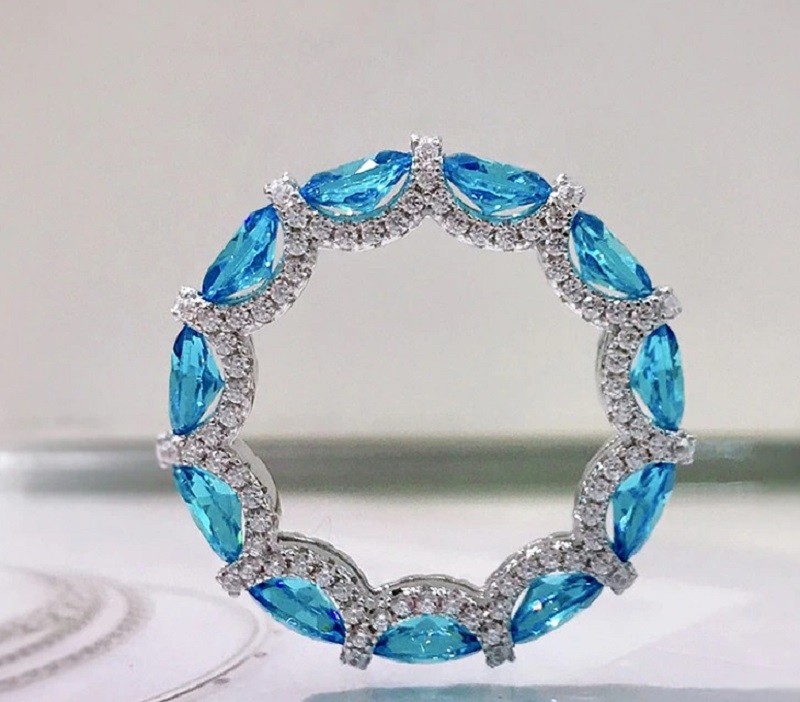 Material: metal de bijuteria, imitação de rubi, imitação de esmeralda, imitação de água-marinha