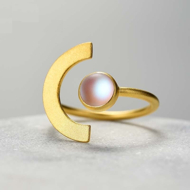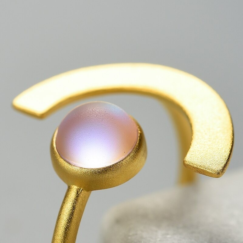 Material: metal de bijuteria, imitação de pedra da lua