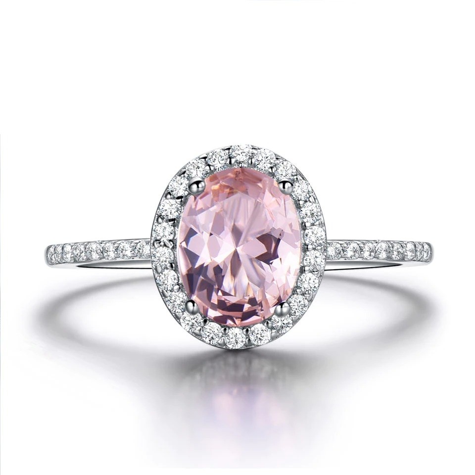 Material: biżuterní kov, imitação de morganite, zircão