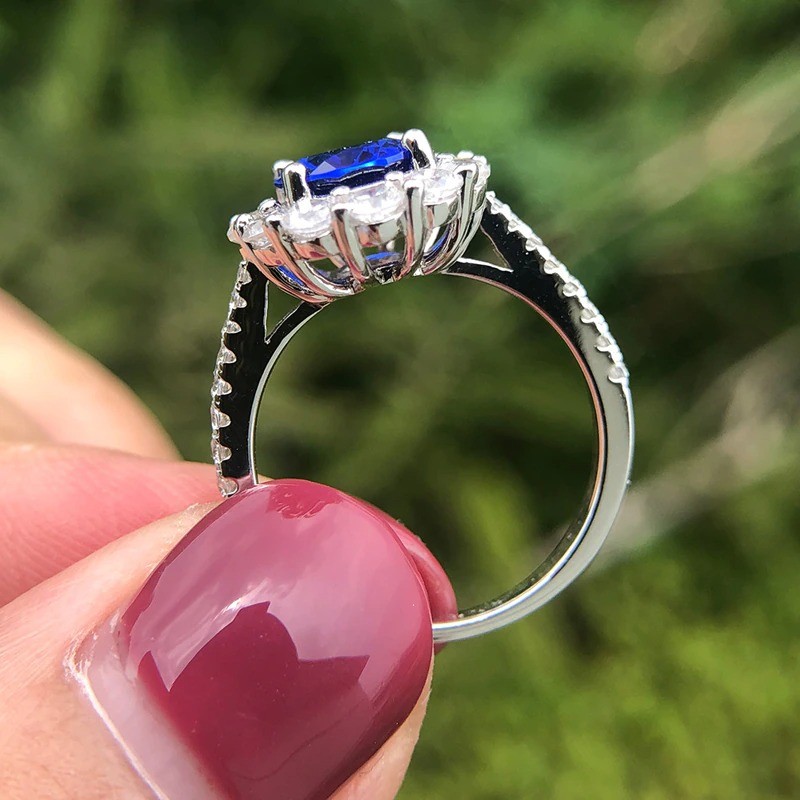 Material: biżuterní kov, imitação de safira