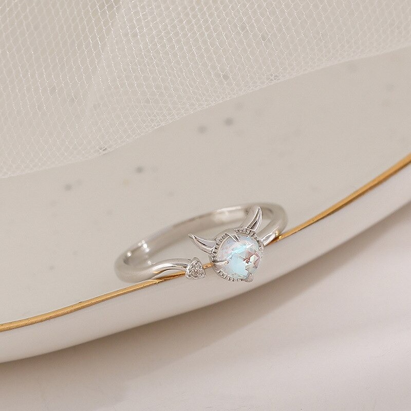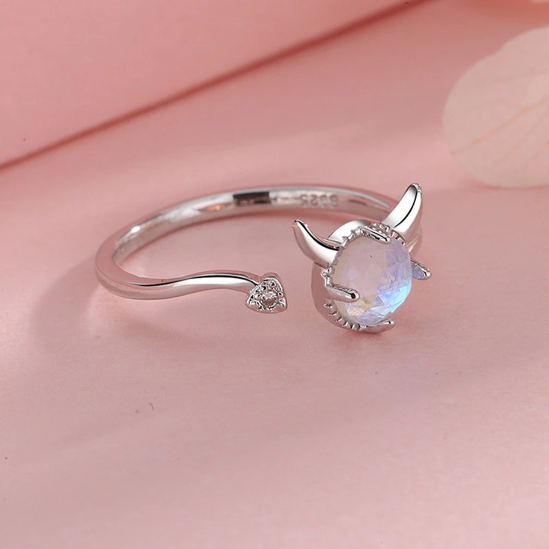 Material: metal de bijuteria, imitação de pedra da lua