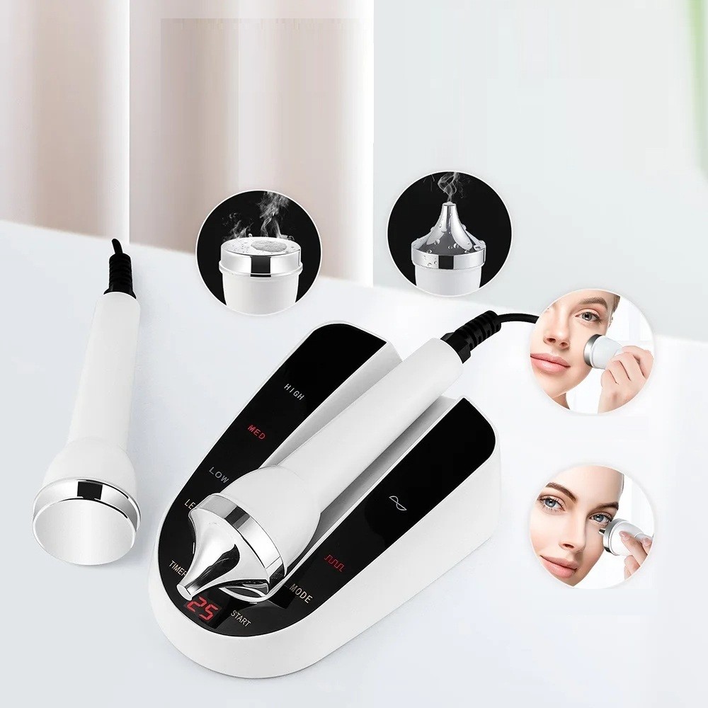 Este aparelho cosmético ultrassónico é projetado para cuidados de pele profissionais e domésticos e combina massagem de alta frequência com tecnologia ultrassónica. Ajuda a estimular a circulação sanguínea, melhorar a elasticidade da pele, reduzir rugas e promover a regeneração profunda da pele. A massagem ultrassónica penetra profundamente nos poros, removendo impurezas e promovendo uma melhor absorção de produtos cosméticos. O aparelho é adequado tanto para lifting facial como para uma suave massagem na área dos olhos, onde ajuda a reduzir inchaços e olheiras. Graças ao seu design ergonómico e fácil manuseio, é ideal para uso diário.