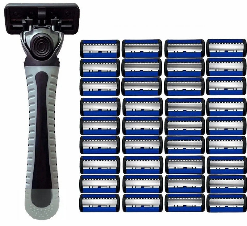 Aparelho de barbear manual para homens e mulheres com 36 cabeçotes de substituição Cabo com lâminas intercambiáveis com seis lâminas