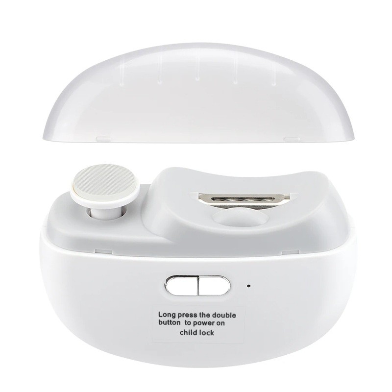 Aparelho elétrico multifuncional para cuidados completos das unhas com bloqueio infantil, lanterna, carregamento USB-C e escova de limpeza. Descrição completa