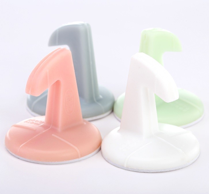 Graças à função adesiva, o apoio adere facilmente à parede. É fabricado em silicone e amortece os impactos.