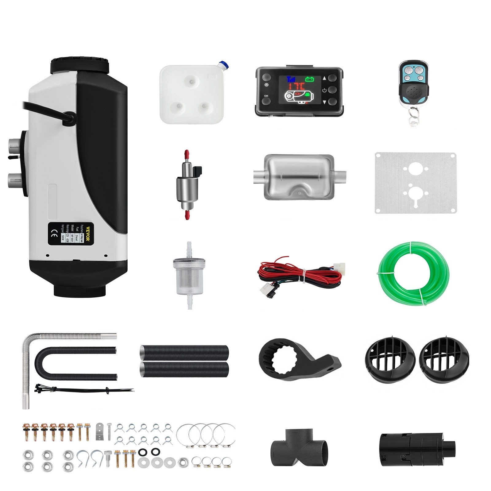 Este aquecimento independente para carro é um excelente auxiliar para o inverno. Consegue desenvolver uma potência de até 5000 W, podendo ser utilizado no seu veículo pessoal ou de carga. O aquecimento possui um depósito de gasóleo com capacidade de 10 litros, pelo que não precisa de se preocupar em parar frequentemente para reabastecer. Vem completo com todos os acessórios para instalação, incluindo controlo remoto, interruptor LCDfiltros e aberturas de ventilação.
