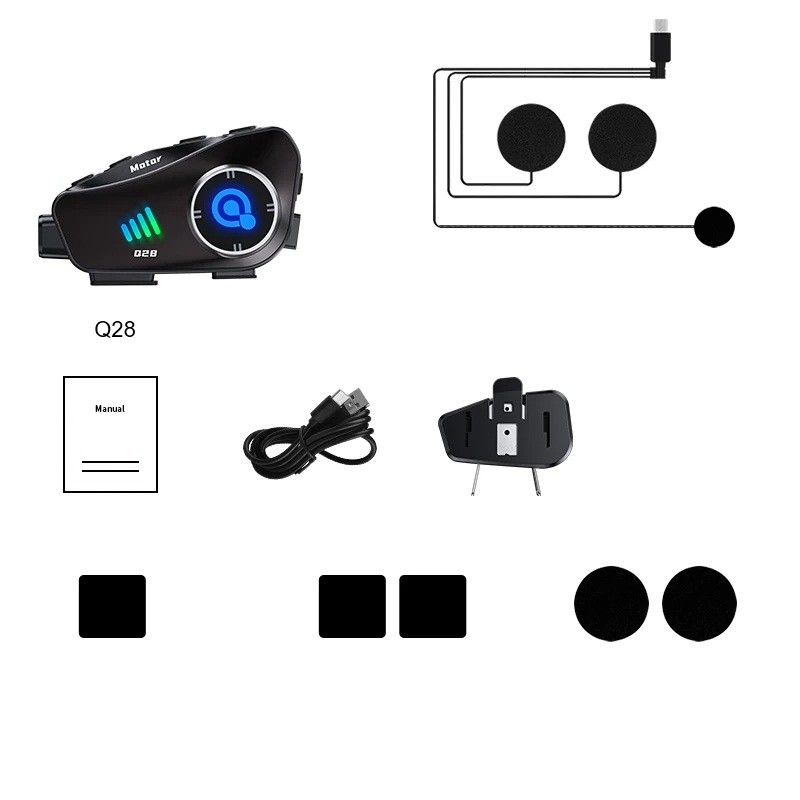 Auricular Bluetooth Q28 MAX com câmara para capacete integral 1960x1080P IP65 WiFi 50 h de autonomia Microfone suave Sem intercomunicador