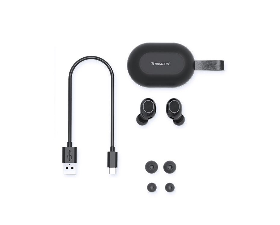 Conteúdo da embalagem: 2x auricular, 1x caixa, 1x cabo de carregamento USB-C, 4x ponta de silicone