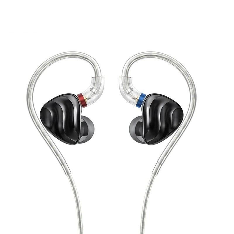 Transdutores 2 em 1 - 1 transdutor dinâmico e 2 transdutores balanced armature. 10 mm transdutor dinâmico revestido de berílio.