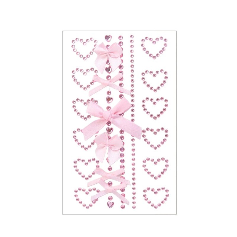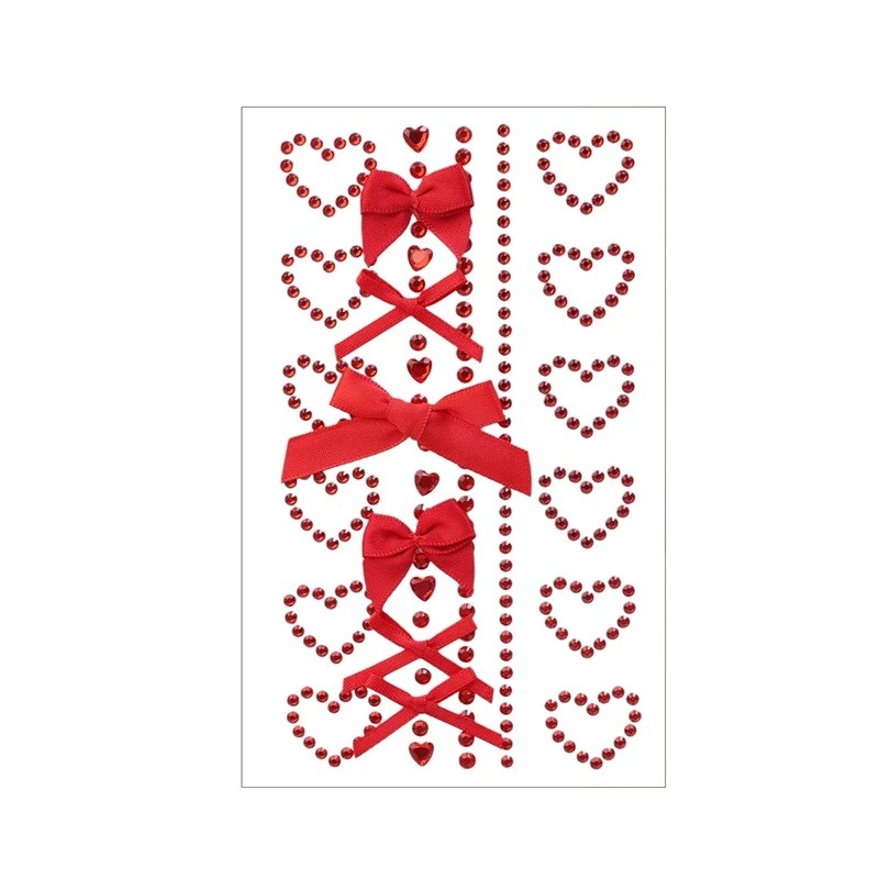Autocolantes de rosto da moda com laço e fita de pedras Arch com corações pequenos e laços