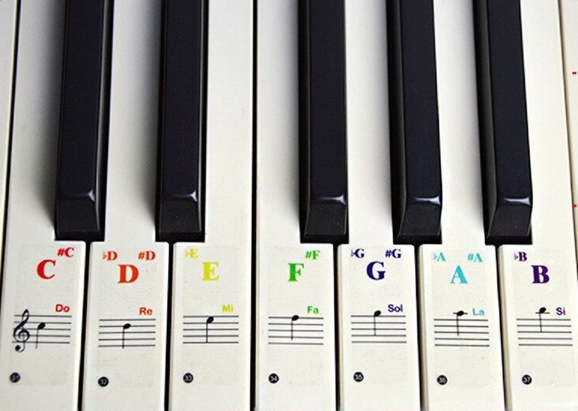 Conjunto completo de autocolantes para iniciantes e entusiastas de tocar piano ou teclas. Cada autocolante é de cor diferente para melhor reconhecimento.