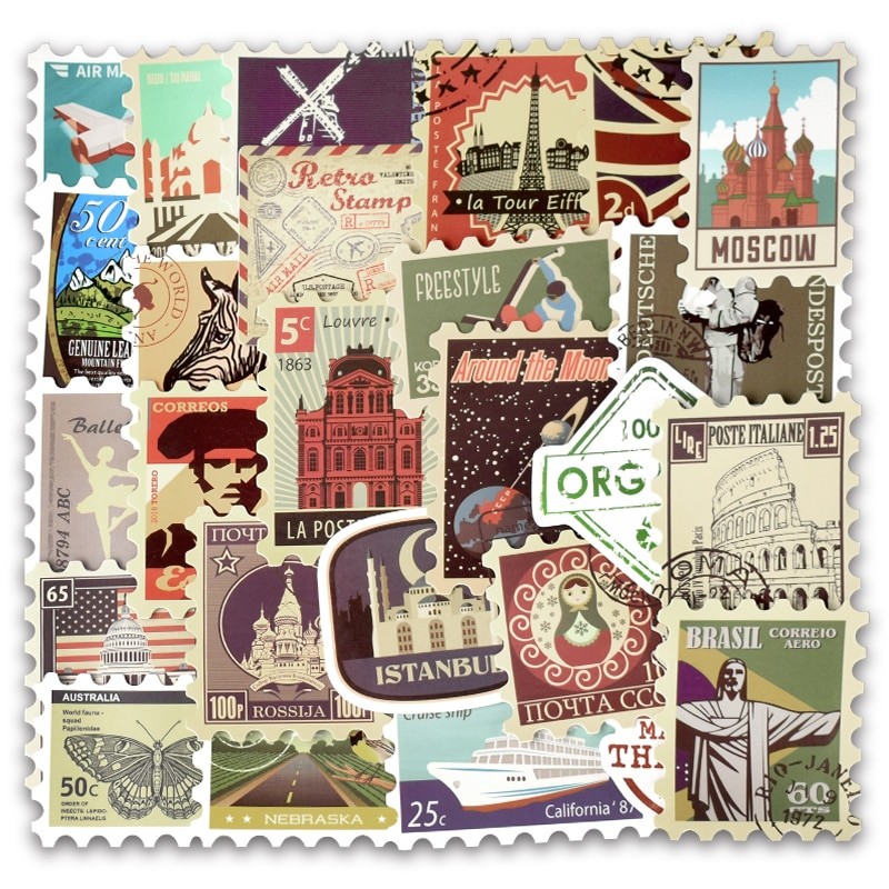 Autocolantes retro de viagem 50 unid
