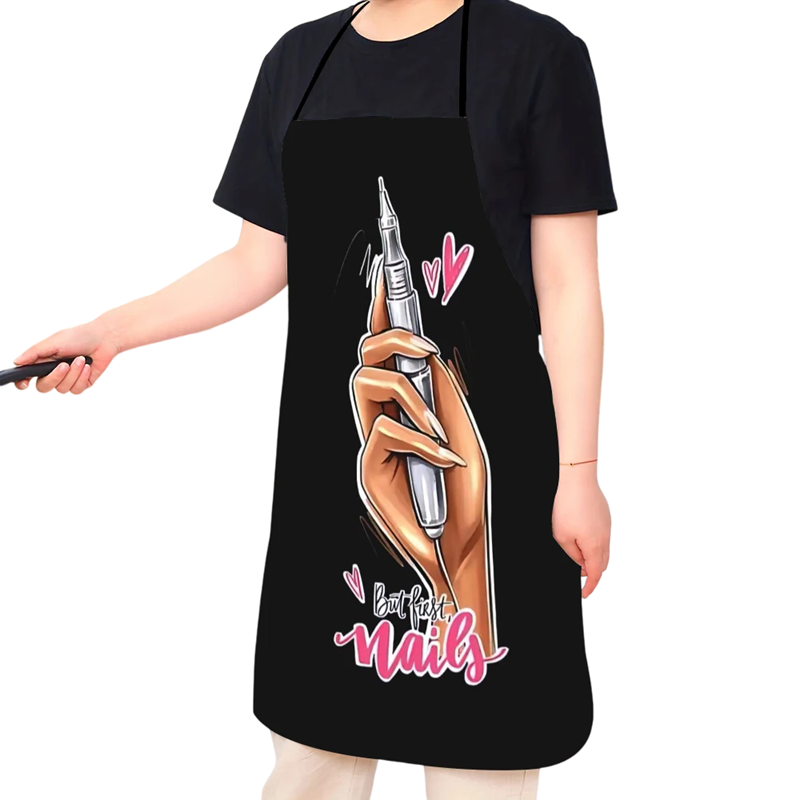 Avental prático para cozinhar, pintar ou cosmética com motivo de unhas. Proteção ideal para a roupa, fácil de manter, design estiloso. Descrição completa