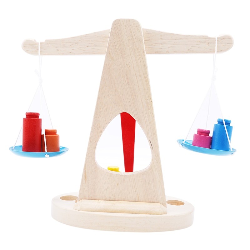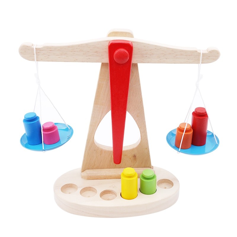 Balança de braço de madeira com peso
